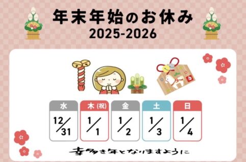 12月30日は18時頃までです。 1月5日 月曜日からは通常の診療となります。